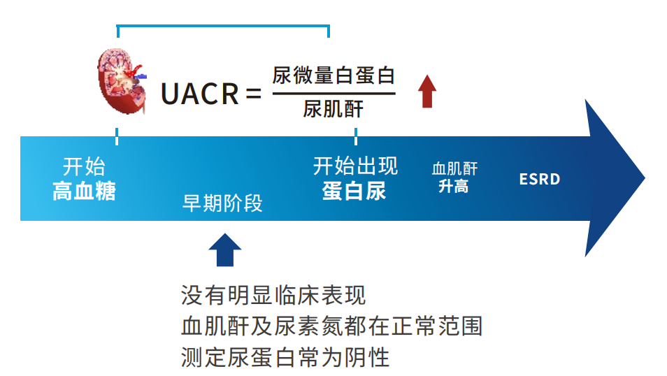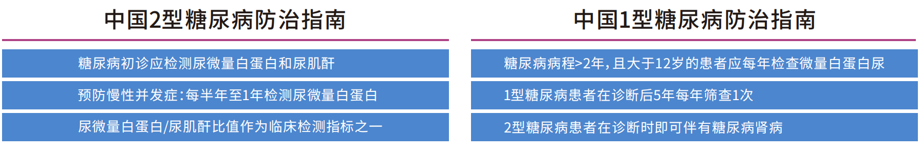 推薦診斷指標(biāo):隨機尿測定UACR(尿白蛋白/肌酐比值);推薦所有T2DM患者和病程5年以上的1型糖尿病患者每年應(yīng)至少進行1次UACR檢測,以便早期發(fā)現(xiàn)DKD。