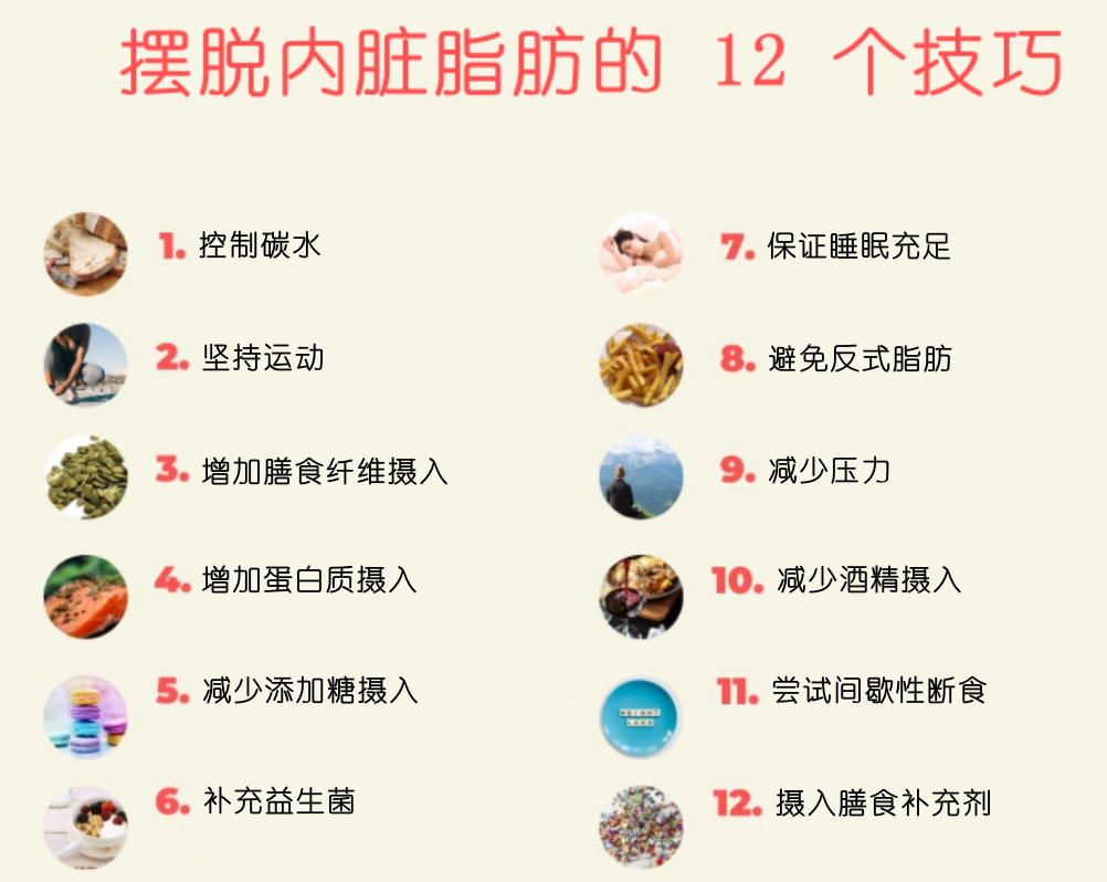除上述方法外,減少添加糖的收入、增加蛋白質(zhì)攝入、減少壓力、避免吸煙喝酒、同時(shí)保持良好的作息習(xí)慣、保證足夠的睡眠和休息等生活方式對(duì)內(nèi)臟脂肪的減少都很有幫助。生活方式是基礎(chǔ),也可搭配定期體檢來進(jìn)行干預(yù),了解自身體內(nèi)激素水平,有針對(duì)性的進(jìn)行治療,可大幅提升效率哦!