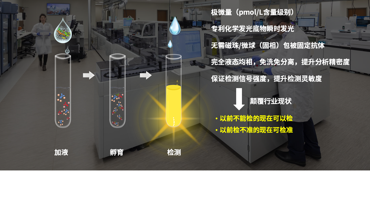 全球首家用完全均相化學發(fā)光法檢測所有的糖尿病和冠心病相關指標,實現(xiàn)同一份標本在同一臺儀器上一次性得到所有需要的檢測結(jié)果;無需包被固定和分離洗滌,具有快速精準,產(chǎn)生醫(yī)療廢液少,成本更低和經(jīng)濟環(huán)保等優(yōu)點。