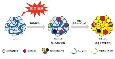 關(guān)于動(dòng)脈粥樣硬化的產(chǎn)生機(jī)制,2016年版的《中國(guó)成人血脂異常防治指南》對(duì)其進(jìn)行了概述:LDL通過(guò)血管內(nèi)皮進(jìn)入血管壁內(nèi),在內(nèi)皮下層滯留的LDL被修飾成氧化型LDL(oxidizedlow-density lipoprotein,ox-LDL ),巨細(xì)胞吞噬ox-LDL后形成泡沫細(xì)胞,后者不斷增多、融合,構(gòu)成動(dòng)脈粥樣硬化斑塊的脂質(zhì)核心。