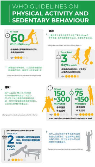 (具體可參考:WHO GUIDELINES ON PHYSICAL ACTIVITY AND SEDENTARY BEHAVIOUR)