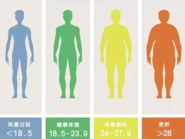 建議每年一次或多次計(jì)算體質(zhì)指數(shù)(BMI),BMI=體重(公斤)/身高(米)2。BMI的理想范圍為18.5~23.9,≥24.0為超重,≥28為肥胖。