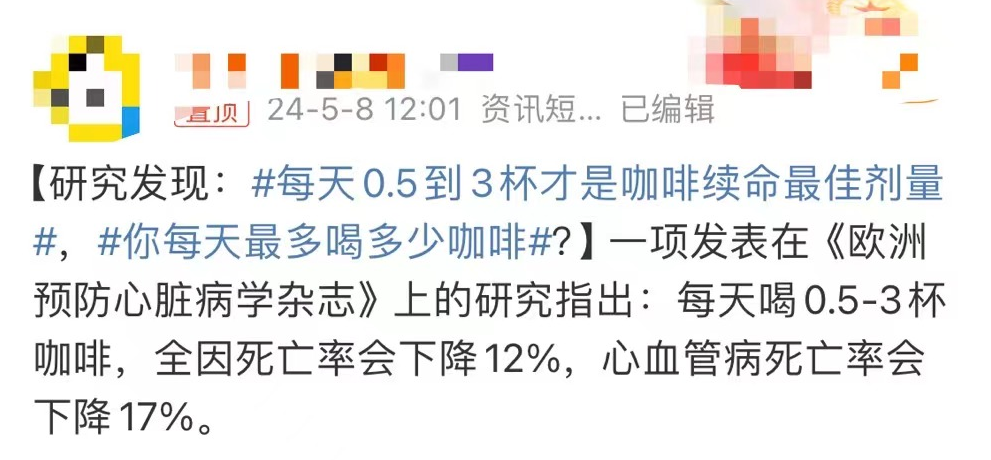 近期上熱搜的話題不知大家看到?jīng)]有,歐洲預(yù)防心臟病學(xué)雜志上的研究指出:每天喝0.5-3杯咖啡,全因死亡率會下降12%,心血管疾病死亡率會下降17%...那么咖啡與心血管疾病有什么千絲萬縷的聯(lián)系呢,今天就來探討一下