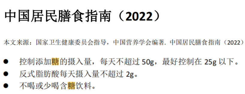 中國(guó)居民膳食指南(2022)建議:控制添加糖的攝入量,每天不超過(guò)50g,最好控制在25g以下。但人體因個(gè)體差異、年齡、性別、身體活動(dòng)水平和健康狀況而異,每日所需的糖分量也是不同的。