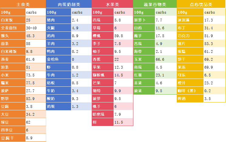 常見(jiàn)食物升糖指數(shù)GI一覽表